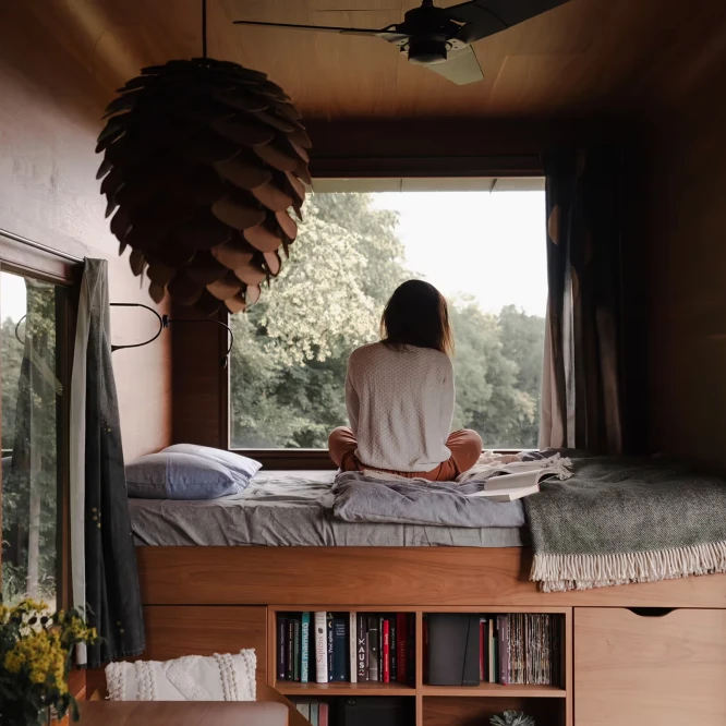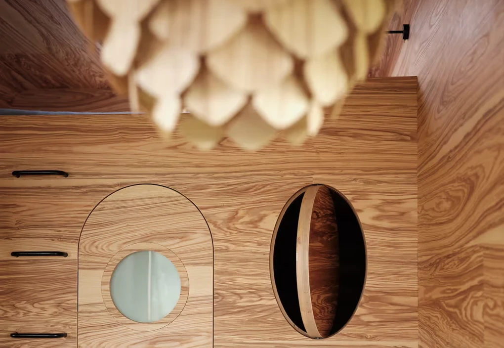 Za vývojem a designem domků i lustru stojí architekt Martin Kožnar. Obojí vzniklo pro glampingový projekt hideandseek Vladimíra Peška, který se na vzniku Šišky také podílel.