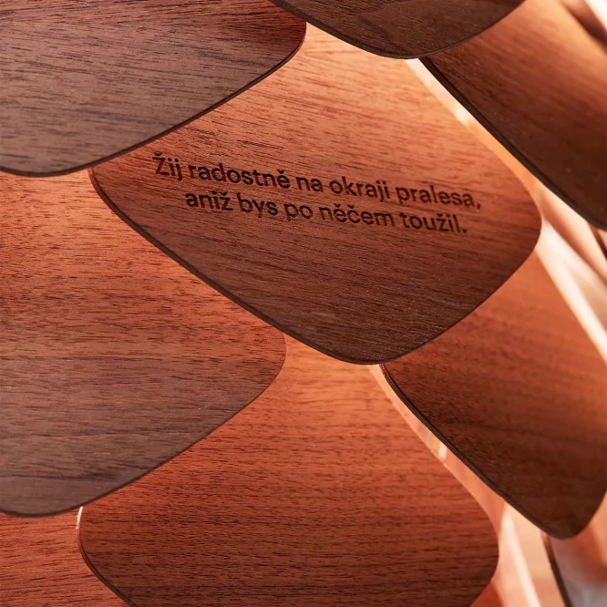 První prototyp lustru, pojmenovaný jednoduše „Šiška“, vznikl právě jako součást unikátního interiéru Aranky – jako prvek propojující přírodu a moderní design.