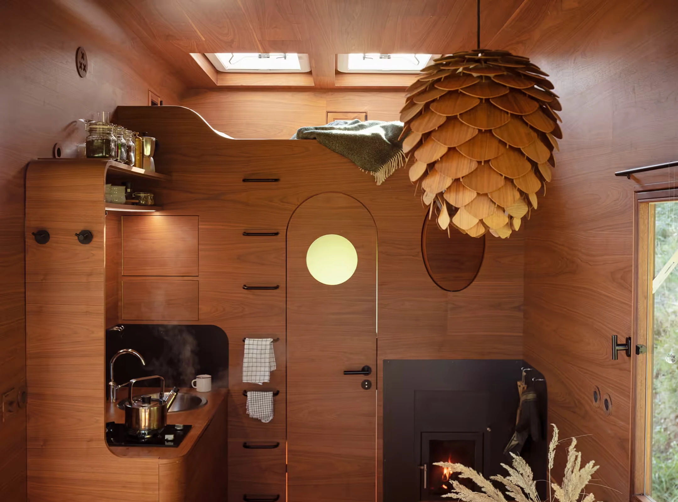 Za vývojem a designem domků i lustru stojí architekt Martin Kožnar. Obojí vzniklo pro glampingový projekt hideandseek Vladimíra Peška, který se na vzniku Šišky také podílel.